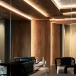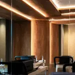 Dieses akustische Mineralpaneel antwortet mit beidem: die fließende Maserung des japanischen Sugi-Holzes in einer warmen, blassbraunen Palette, montiert auf einer recycelten PET-Rückseite, die Umgebungsgeräusche in architektonische Ruhe verwandelt. Sanfte, lineare Wellen gleiten über die Oberfläche wie die Erinnerung an Waldlicht durch Zedernholz: organisch, gemächlich, zutiefst menschlich.