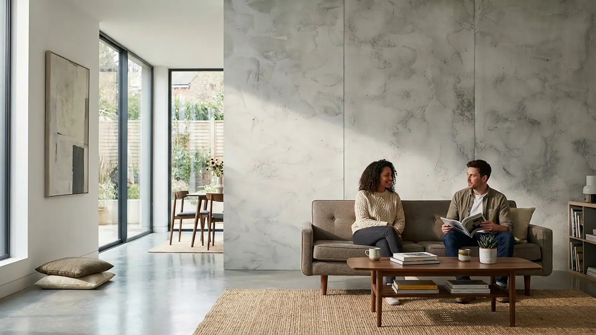 In Light Pebble Grey – einem weichen, kühlen Beige, das mit subtilen Sprenkeln und wolkigen, kalksteinähnlichen Variationen angereichert ist – findet die Rohheit des Betons ihren raffiniertesten Begleiter. Dies ist nicht das Grau der städtischen Härte, sondern das Grau von glattem Flussstein und leicht verwittertem Kalkstein: organisch, leuchtend und mühelos modern. Frisch ohne Sterilität. Texturiert ohne Übermaß. Die Art von Farbe, die einer Wand das Gefühl gibt, schon immer da gewesen zu sein, den Raum ruhig zu verankern und alles andere atmen zu lassen.