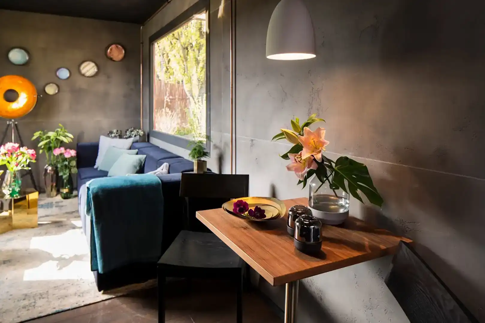 Diese flexible Mineralfurnierrolle glatter Zement dunkelgrau wurde entwickelt, um die rohe Eleganz von Beton nachzubilden und gleichzeitig seine traditionellen Einschränkungen zu überwinden. Sie ist hauchdünn und leicht und lässt sich nahtlos an Wänden, Möbeln und gewölbten Oberflächen anbringen, was neue Möglichkeiten für die moderne Innenarchitektur eröffnet.