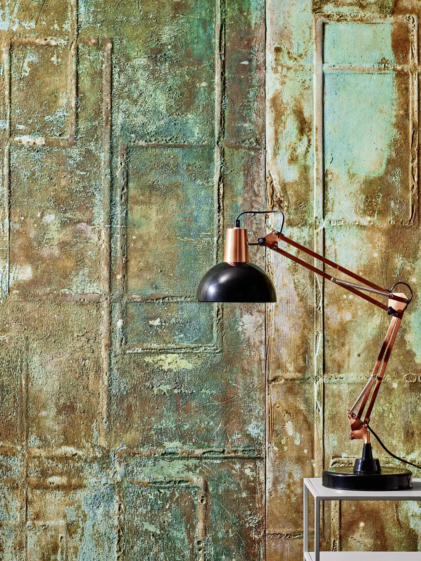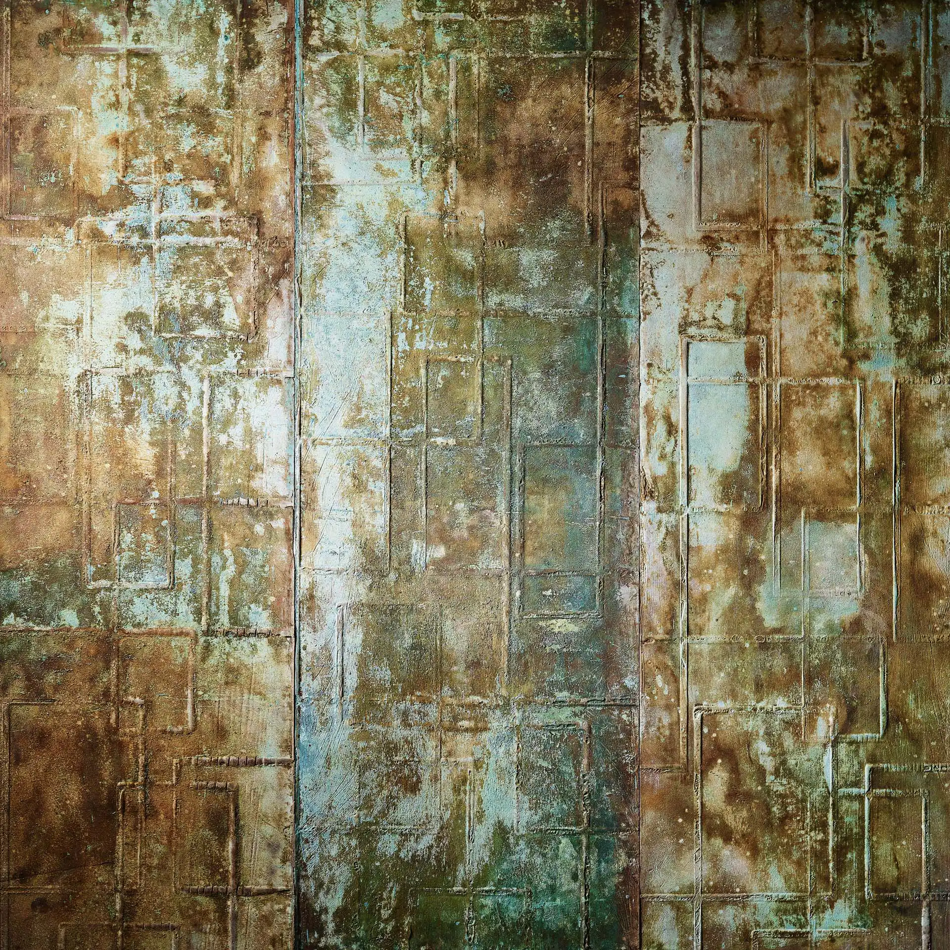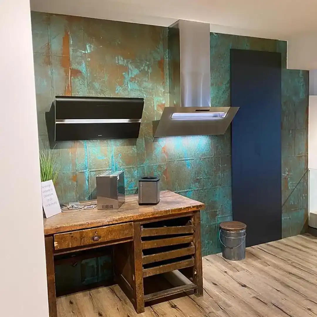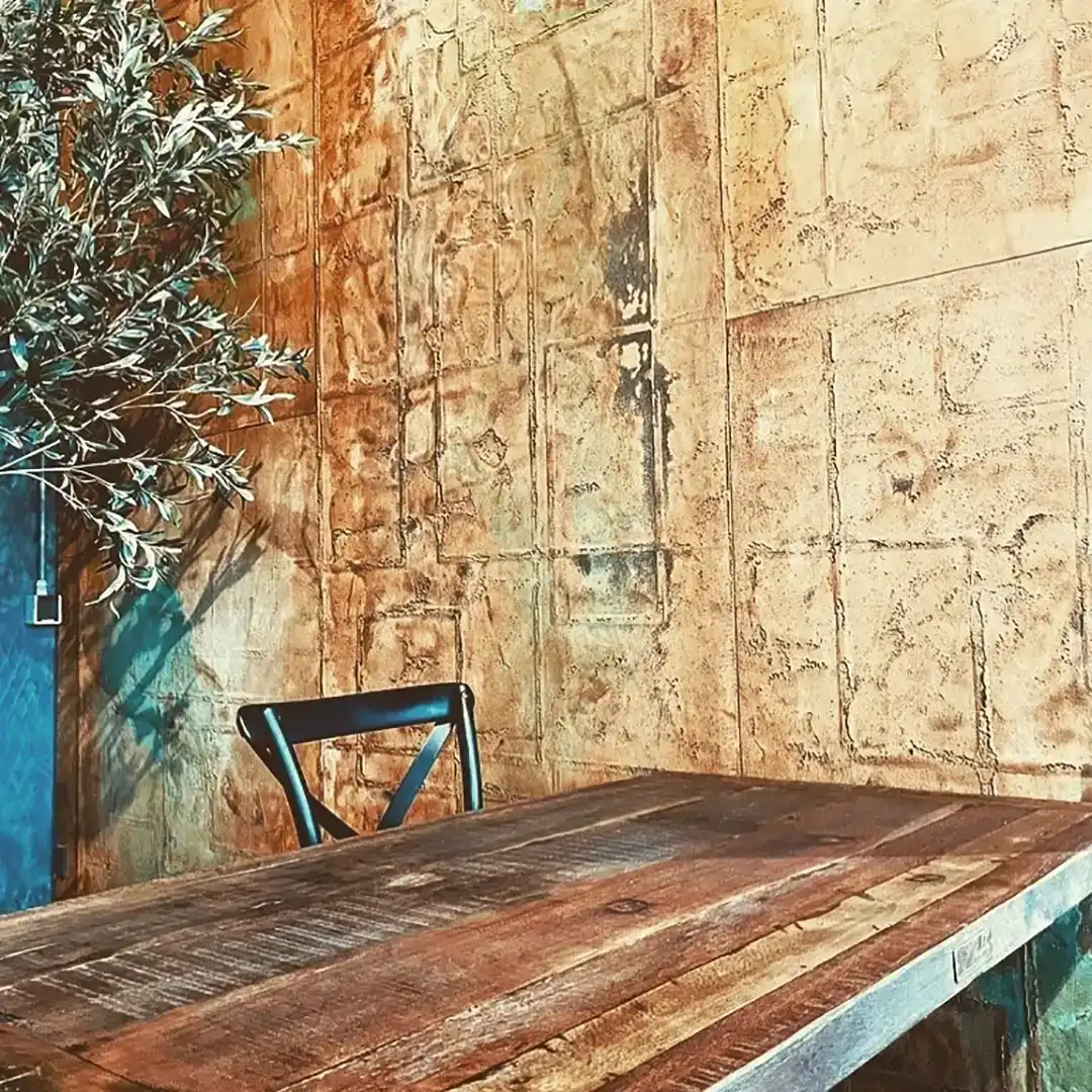 Le placage minéral en rouleau XSTONE en texture Quarter et en cuivre rouillé est une surface murale en pierre flexible qui fusionne deux des forces les plus convaincantes du design contemporain : la clarté froide des motifs architecturaux et le drame brut et vivant du métal oxydé. La texture Quarter apporte un rythme graphique et modulaire à la surface – des chemins linéaires doucement arrondis s’entrecroisent dans une géométrie calme et fluide qui semble à la fois précise et organique, comme un schéma dessiné à la main. Superposé à cette structure, le coloris Rusted Copper met le feu aux poudres. Des verts verdâtres profonds s’infiltrent dans des bassins turquoise électriques. L’ambre chaud et la terre de sienne brute ancrent les bords. Une palette qui passe du jade à la malachite, du bronze à l’or vieilli – une finition murale à la patine de cuivre rouillé qui ne se lit pas comme une décoration, mais comme une poésie géologique.