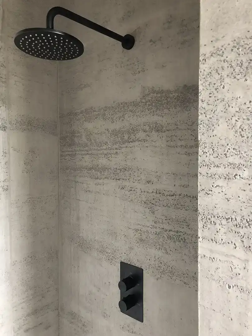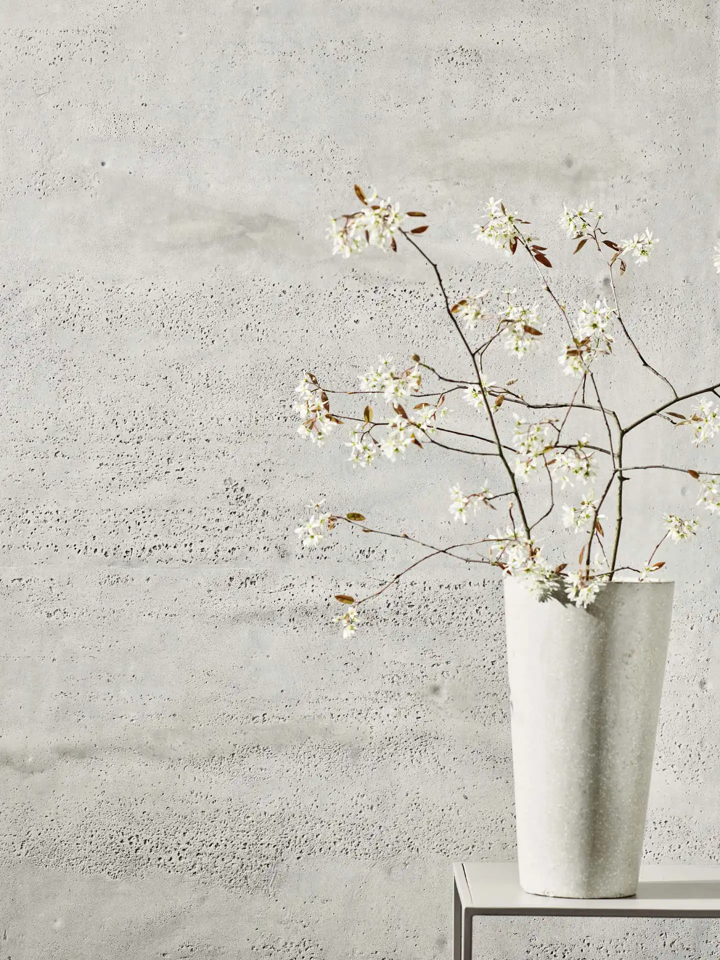 La rencontre de la pierre ancienne et de l’ingénierie moderne. Ce revêtement minéral flexible combine la profondeur intemporelle du Travertin Classique avec un ton raffiné de Galet Gris Moyen. Il est monté sur un support léger en fibre de verre. Sa surface révèle une constellation de pores naturels et de micro-cavités. Chacune d’entre elles est un témoignage silencieux du temps géologique, rendu dans une palette équilibrée de gris froids qui semble à la fois ancrée et lumineuse.