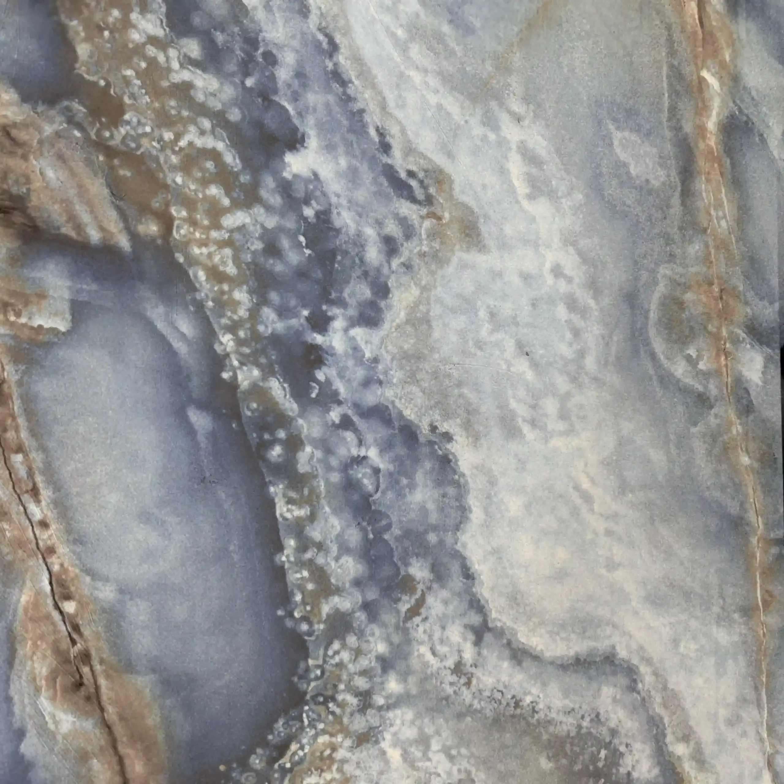 This color is a poetic fusion of misty blue-grey, soft cloud-white and warm mineral amber, flowing together in organic crystalline layers that feel both fluid and solid at once, evoking the quiet beauty of water, stone and light frozen in time, and bringing a sense of depth, serenity and refined luxury to any space