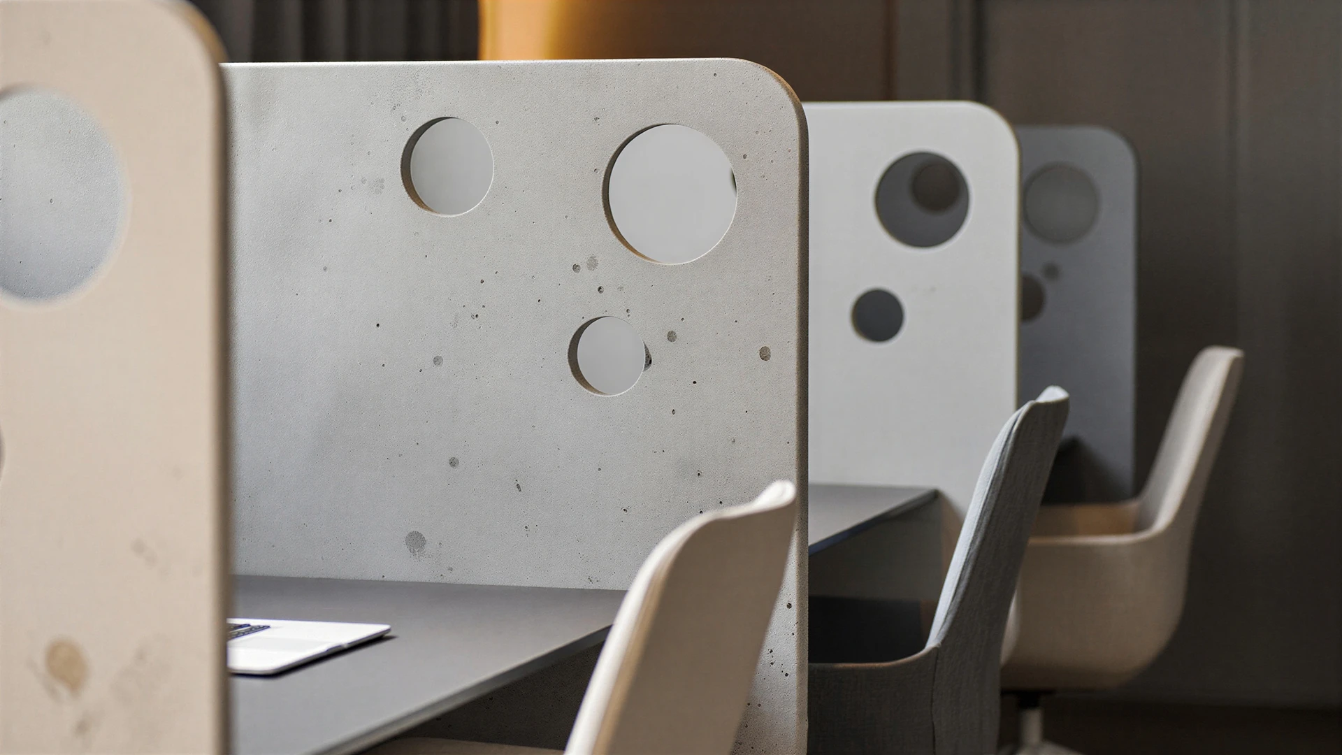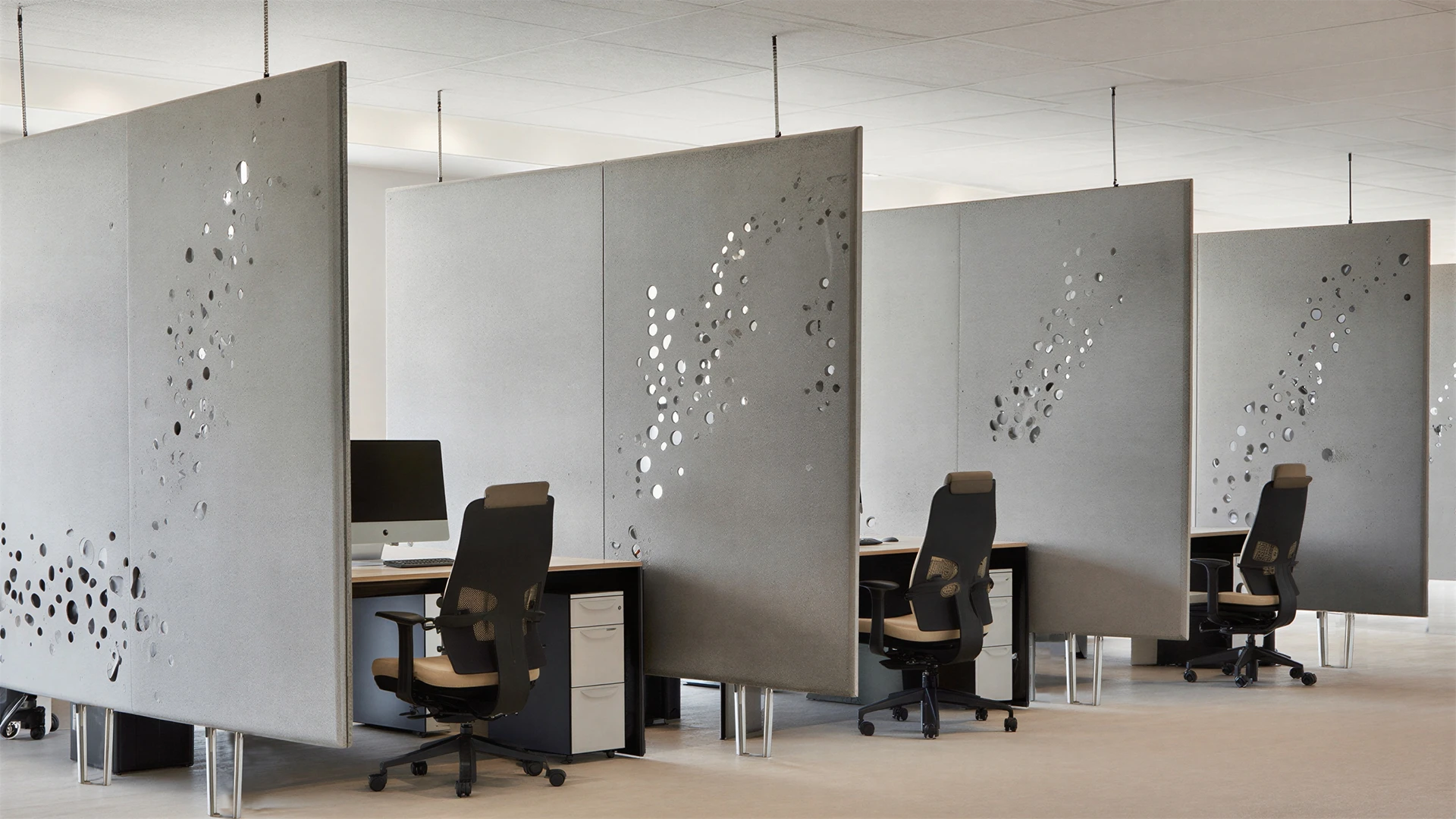 As a natural extension of a global acoustic concept, partition screens shape calm and focus by absorbing sound and creating gentle lateral separations. Designed for open-plan offices yet adaptable to any space, they blend performance and aesthetics through a wide range of expressive designs.