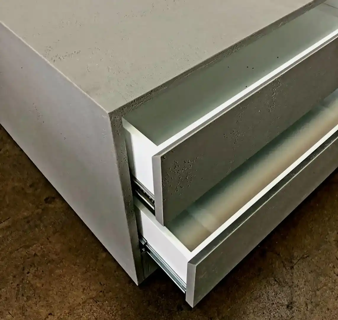 Ultra-thin real stone laminate, just 1–2 mm, bonded to a dimensionally stable MDF core: all the visual and tactile richness of natural stone, with a fraction of the weight, the complexity, and the environmental footprint. Compliant with E1 formaldehyde emission standards.