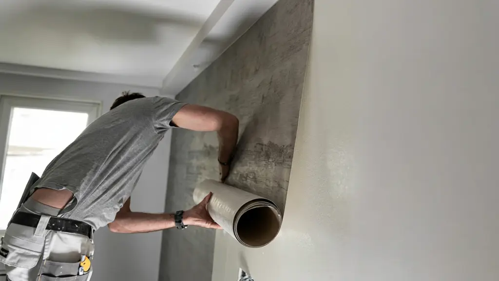 - Pass over the surface again with a pressure roller or sponge to ensure complete bonding. Repeat the process until the entire wall is covered.